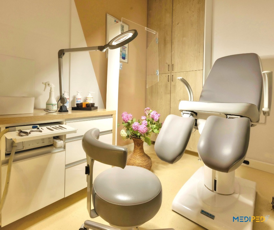 Poslovanje salona mediped odvija se u luksuznom prostoru veličine 200 m2 unutar kojeg se nalazi osam komfornih, vrhunski opremljenih kabina u kojima se provode tretmani medicinske i standardne pedikure. Uz kabine, u salonu je i cijeli niz popratnih prostorija poput recepcije, vrhunski opremljene sterilizacije, specijalizirane trgovine te ostalih sanitarnih prostorija potrebnih za uspješan rad.